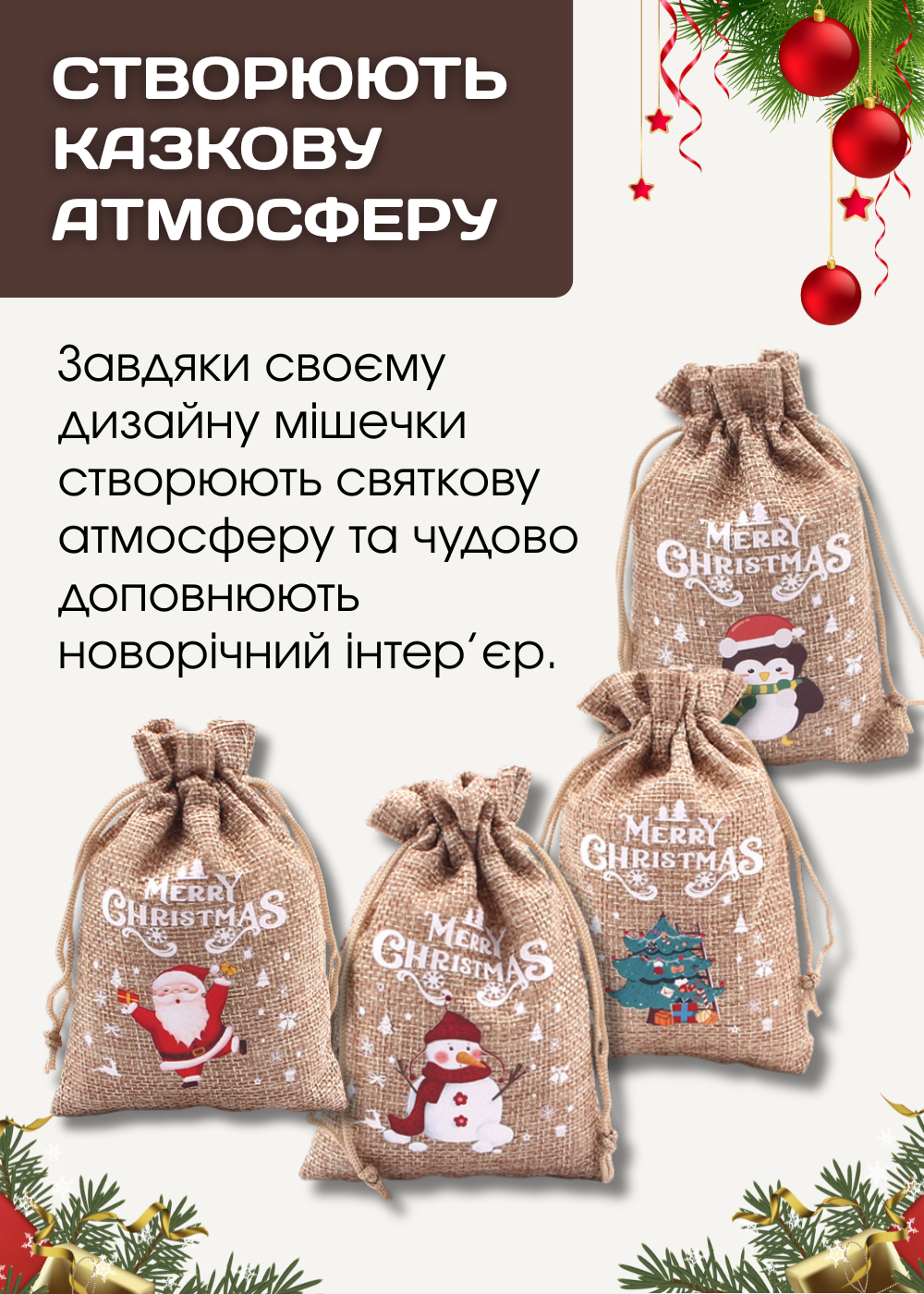 Подарункові мішечки з льону ідеально підходять для упаковки невеликих подарунків до Нового року та Різдва.